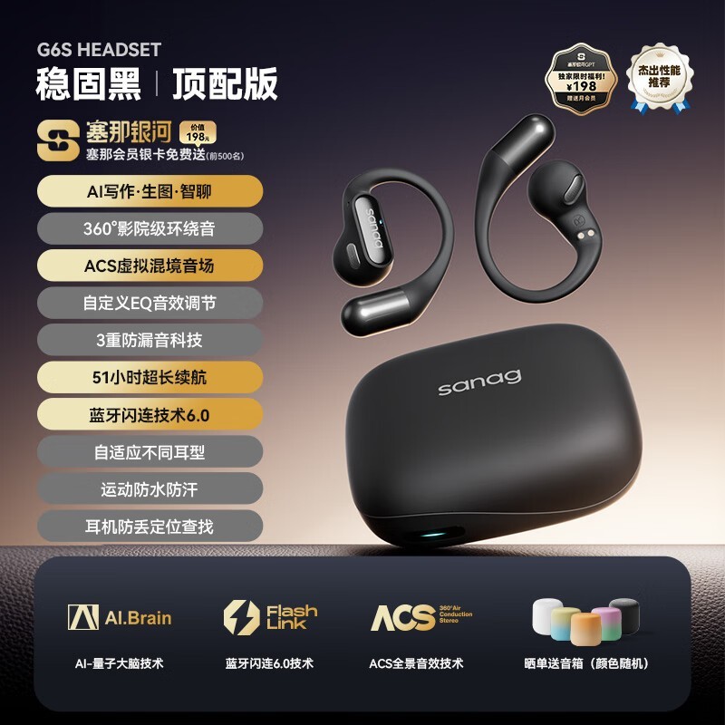 塞那G6S AIMAX藍(lán)牙耳機(jī)379元到手價(jià)